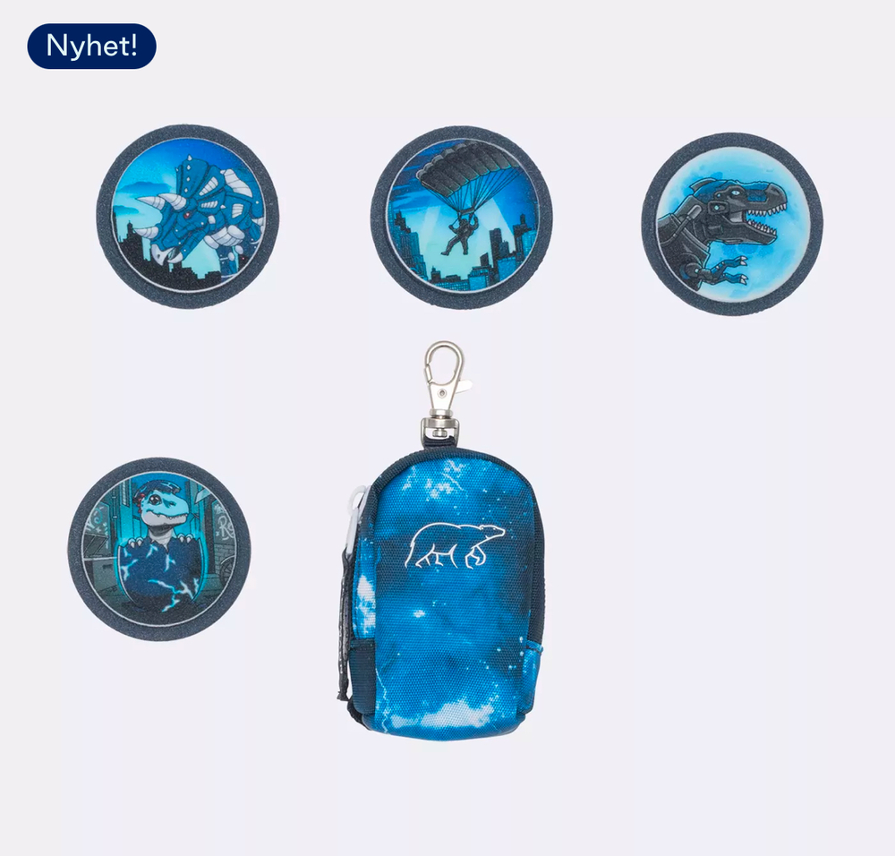 Vendbar frontlomme. Barn har forskjellige ønsker og dette endrer seg i løpet av de første skoleårene. Vi ønsker å møte dette behovet. Derfor kommer nå alle Classic-design med vendbar frontlomme (unntak: Tech Rex) som gjør at sekken kan skifte utseende i løpet av sekunder. Sekken blir da også mer nøytral dersom du ønsker det.