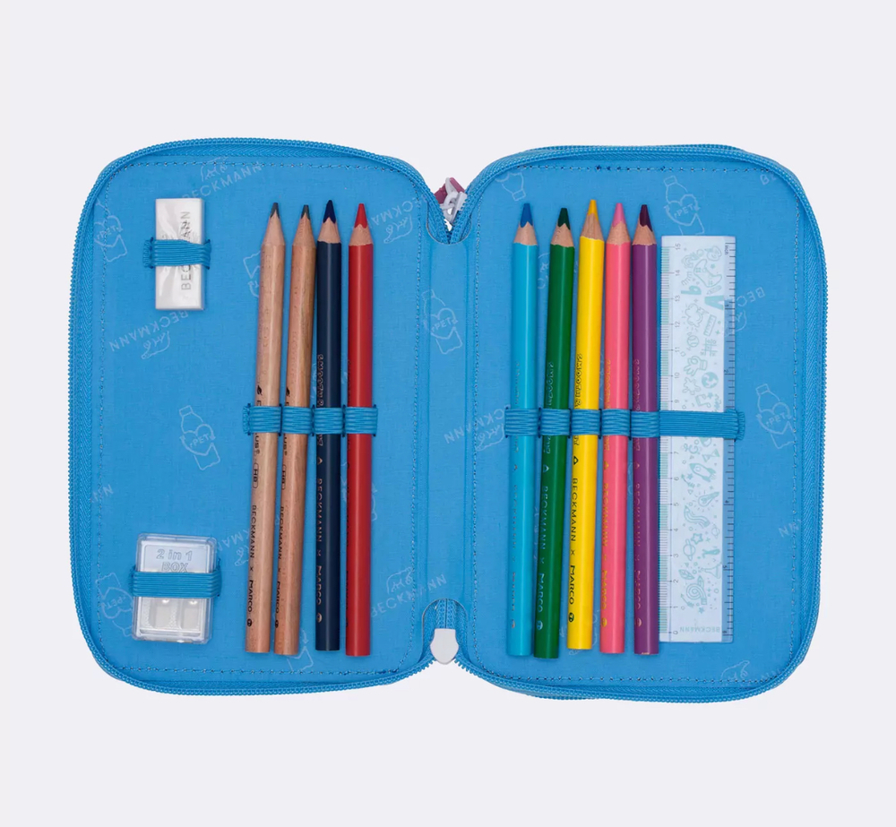 Pennalet er fullt av overraskelser, og inneholder selvfølgelig alt du trenger til skolen og leksene. Blyanter og fargestifter laget av FSC-sertifisert tre.