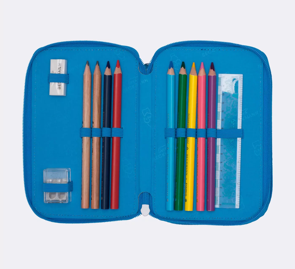 Pennalet er fullt av overraskelser, og inneholder selvfølgelig alt du trenger til skolen og leksene. Blyanter og fargestifter laget av FSC-sertifisert tre.