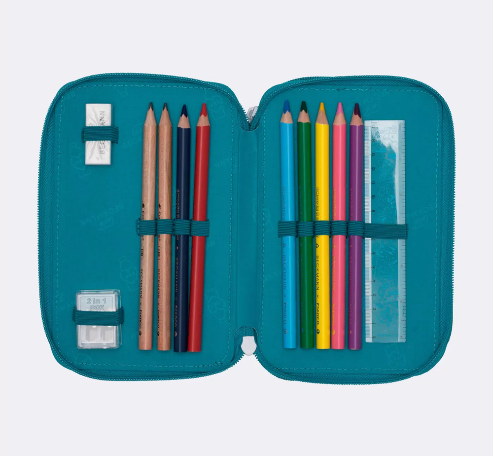 Pennalet er fullt av overraskelser, og inneholder selvfølgelig alt du trenger til skolen og leksene. Blyanter og fargestifter laget av FSC-sertifisert tre.