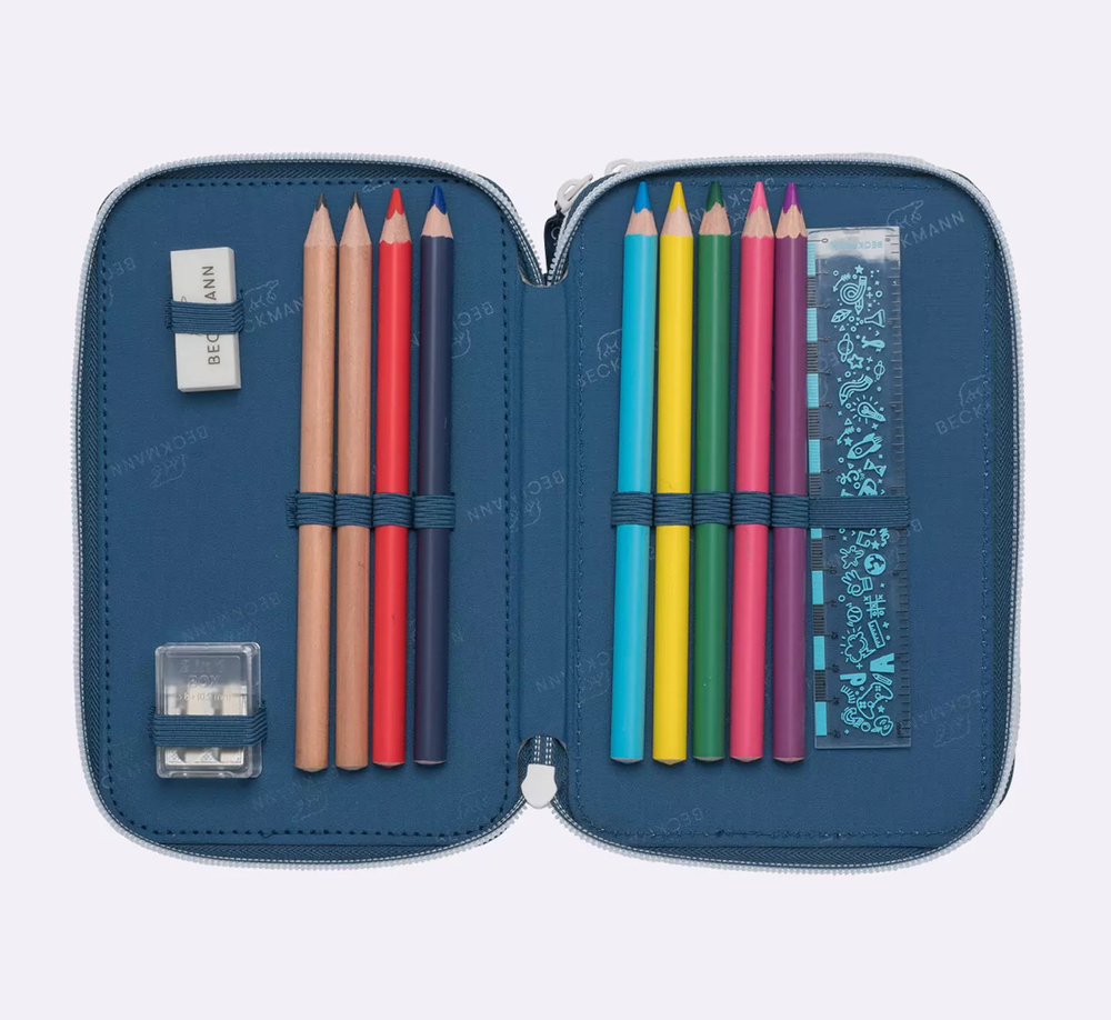 Pennalet er fullt av overraskelser, og inneholder selvfølgelig alt du trenger til skolen og leksene. Blyanter og fargestifter laget av FSC-sertifisert tre.