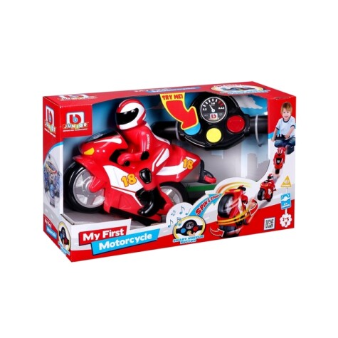 My First Motorcycle fra BB Junior vil være en hit hos de små. Motorsykkelen kan gjøre alle mulige kule triks! Du styrer bilen med fjernkontrollen. Trykk på den gule knappen for å gjøre triks, den røde for å snu til høyre og venstre og den blå knappen for å kjøre fram og tilbake. I tillegg lager motorsykkelen også morsomme lyder. Egnet fra 2-5 år.
