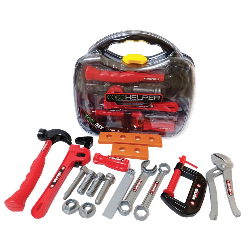Stilig verktøysett for den lille snekkeren fra Fun2Play. Settet inkluderer 16 verktøy.