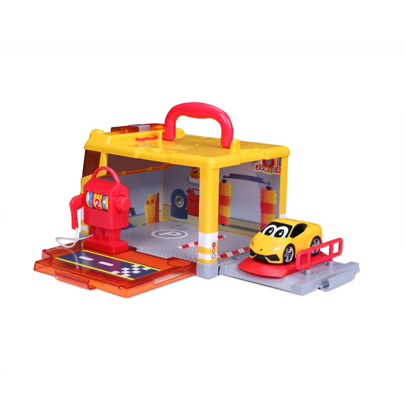 Dette parkeringsanlegget har kjørelyder, lys og bærehåndtak slik at barna kan transportere favorittkjøretøyene sine med stil. Inne i anlegget er det en bensinstasjon med bensinpumpe og heis, noe som forbedrer lekeopplevelsen ytterligere. Fra 18 måneder