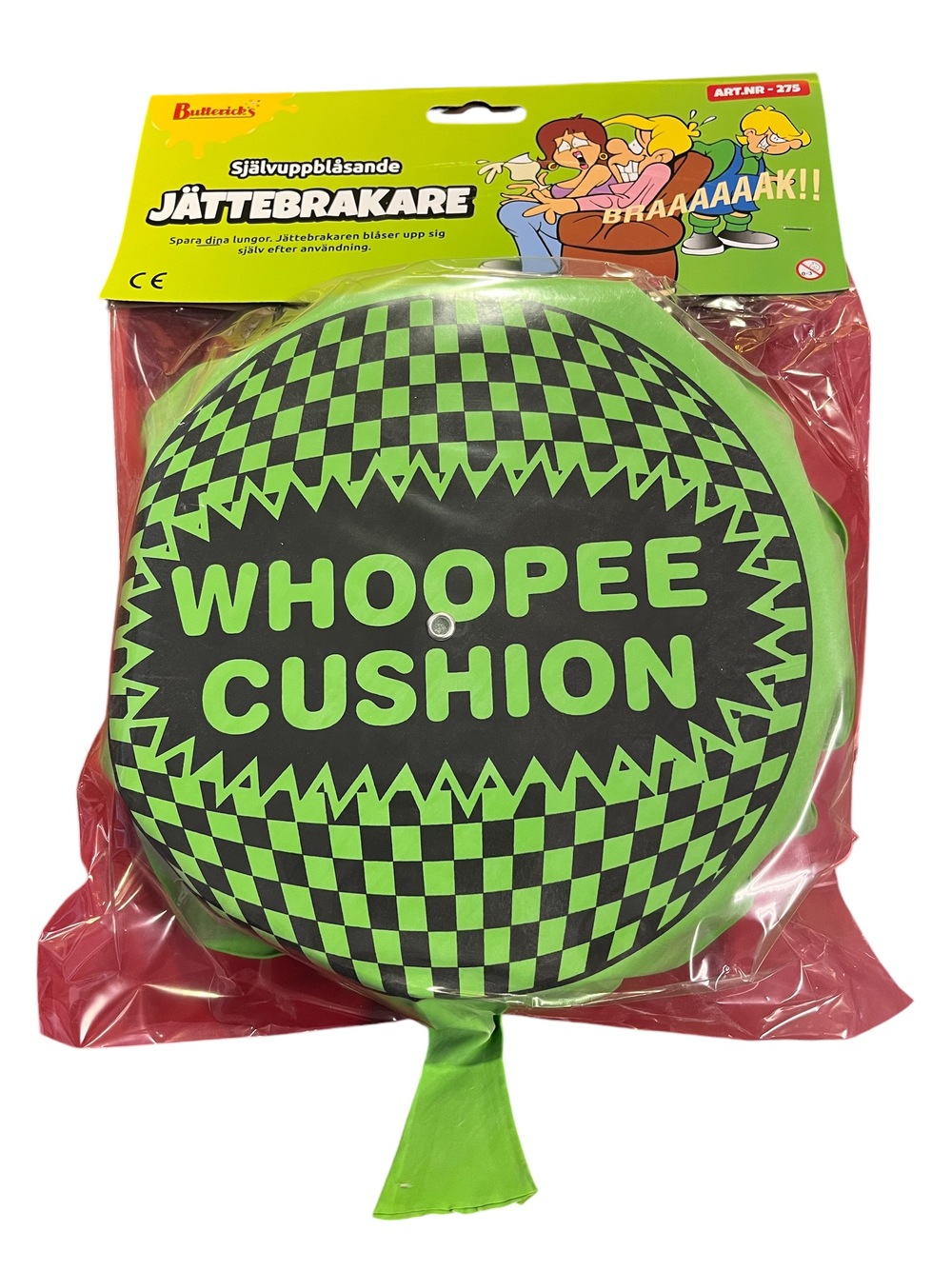 En større versjon av den klassiske fprompeputen! Selvoppblåsende og passer for alle aldre. Med ugagn og moro liver du opp enhver kjedelig dag!