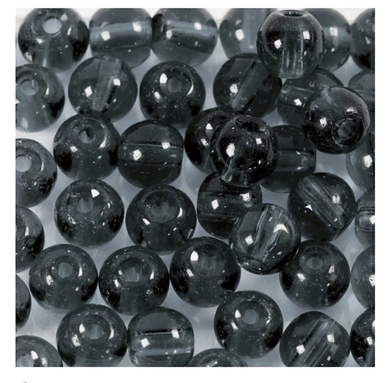 Glassperler grå, dia 4mm, hullstr 1mm- 45stk