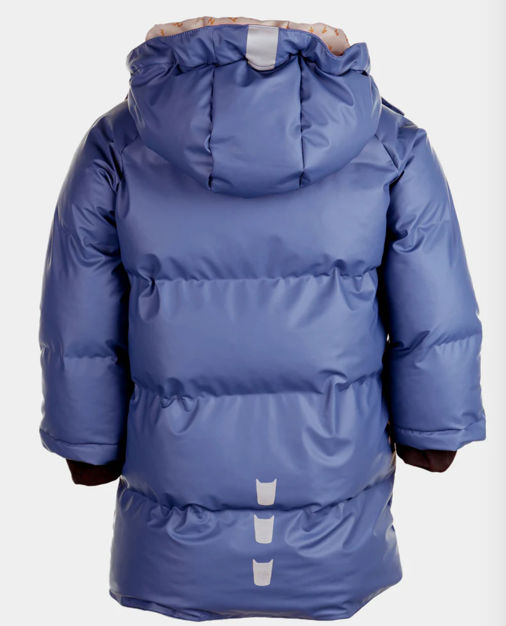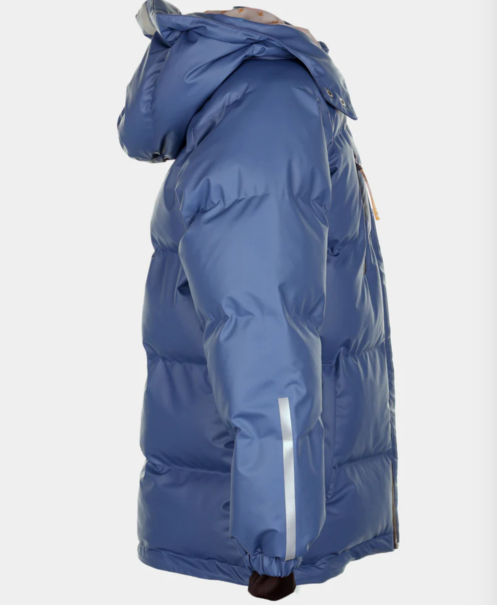 Bobleregnjakkar i PU materiale og ei vannsøyle på 10 000 mm. Desse er heilt vanntette der regnet prellar av stoffet. Jakkane har vattering i form av kunstfiber så her kan junior halde seg varm og heilt tørr når hausten sett inn for fullt. Det syntetiske foret held på varmeevna når det blir vått, i motsetning til dun, og sidan dette er ei regnjakke har me valt bort dunet. Jakke er slitesterk og kan vaskast som vanleg PU-regntøy utan å miste form og funksjon. I tillegg tørkar syntetiske materialar raskare enn naturleg dun, noko som er ideelt når PU-stoffet ikkje skal i tørketrommelen. I tillegg har jakka sjølvsagt teipa og sveisa saumar