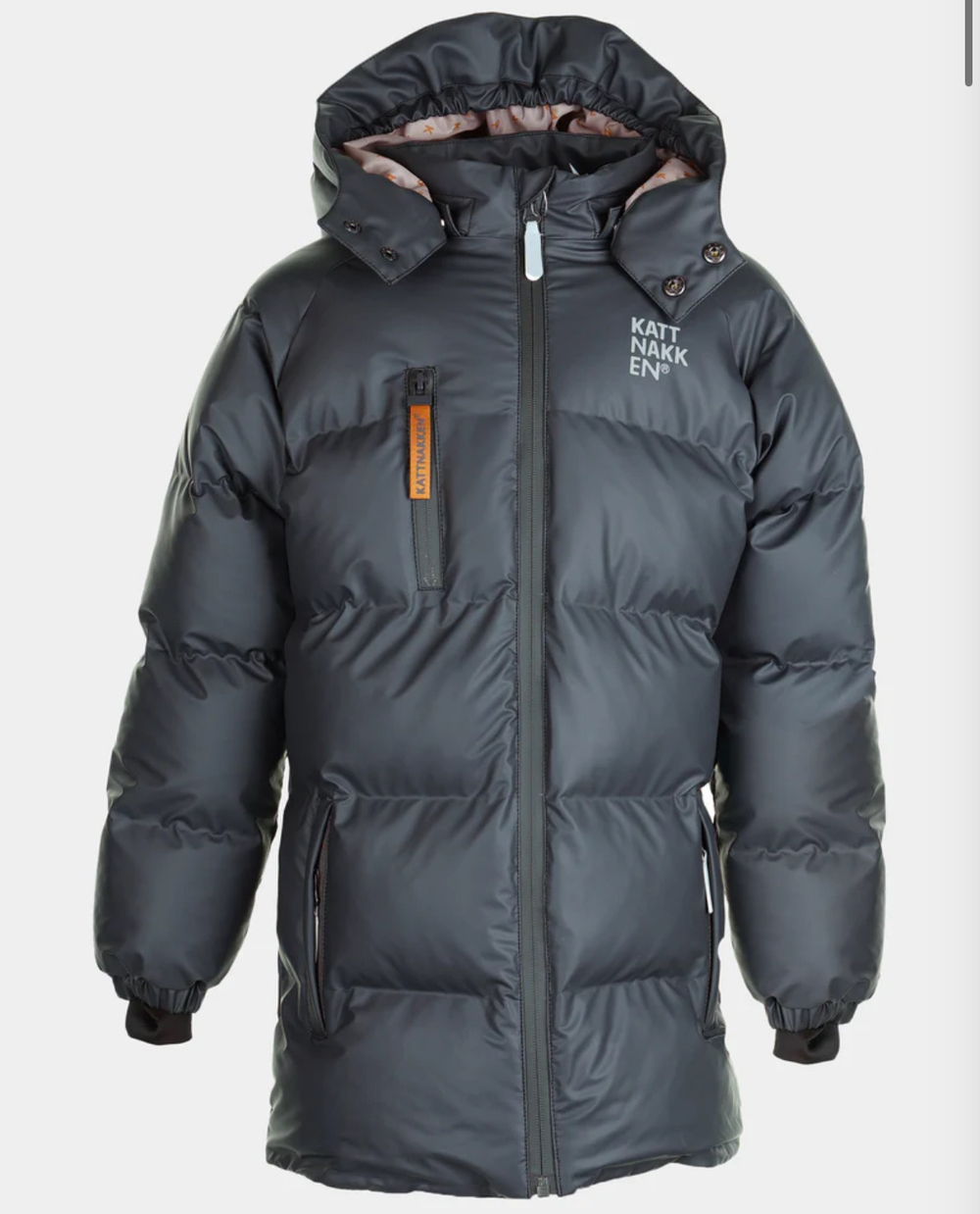 Bobleregnkåper i PU materiale og ei vannsøyle på 10 000 mm. Desse er heilt vanntette der regnet prellar av stoffet. Kåpene har vattering i form av kunstfiber så her kan junior halde seg varm og heilt tørr når hausten sett inn for fullt. Det syntetiske foret held på varmeevna når det blir vått, i motsetning til dun, og sidan dette er ei regnjakke har me valt bort dunet. Kåpa er slitesterk og kan vaskast som vanleg PU-regntøy utan å miste form og funksjon. I tillegg tørkar syntetiske materialar raskare enn naturleg dun, noko som er ideelt når PU-stoffet ikkje skal i tørketrommelen. I tillegg har kåpa sjølvsagt teipa og sveisa saumar