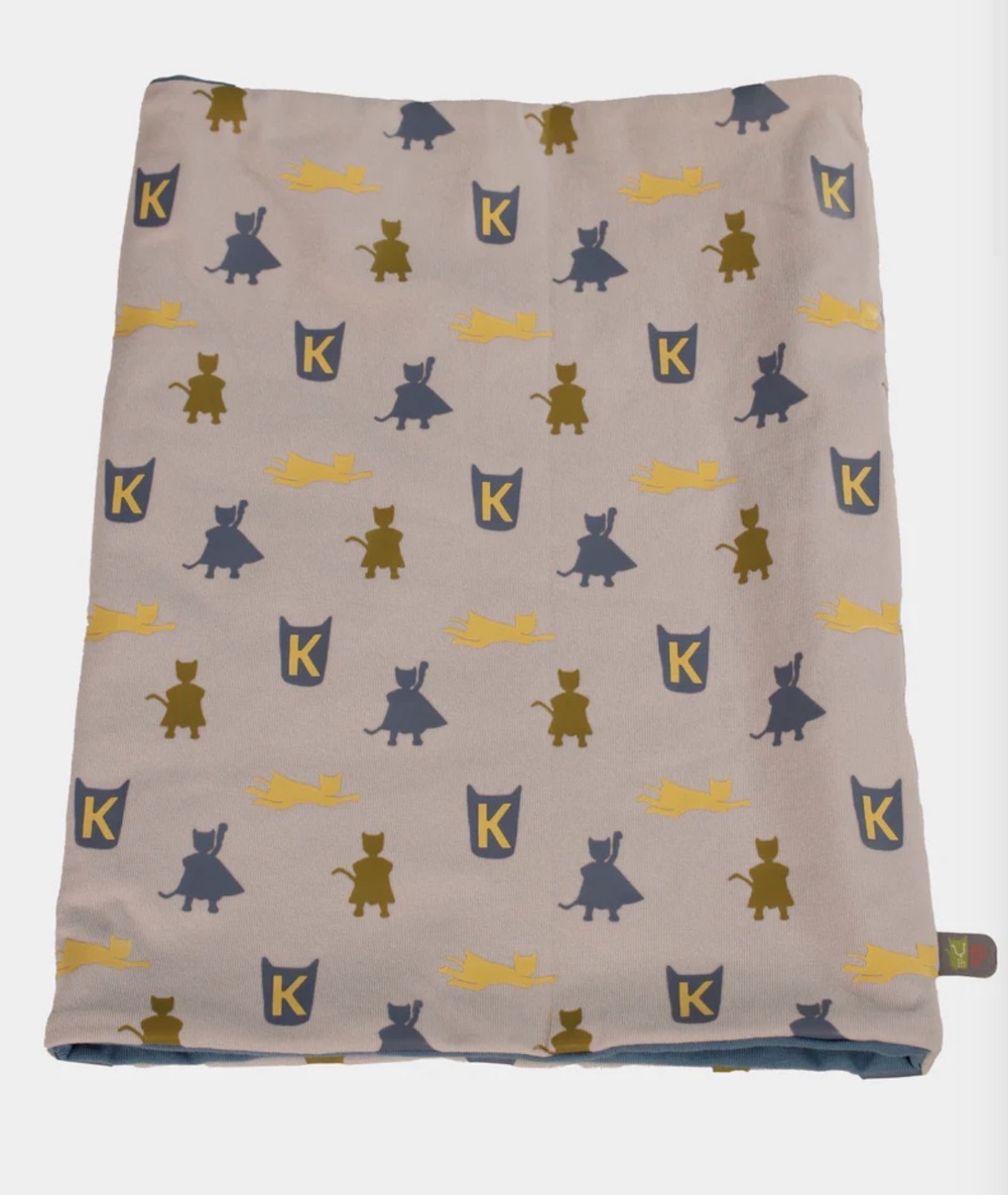 Hals/Buff i mjuk bomull med print frå kolleksjon "Superkatten - 2026" som kan vendast og brukast på begge sider.