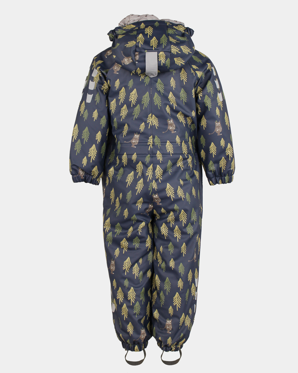 Vinterregndress Slaps- kolleksjon "Tolvmeterskogen 2025". Vår superpopulære vinterregndress er tilbake i si tradisjonelle form med rett glidelås. Men, den har i tillegg for nokre forbetringar. Glidelåsen er heilt vanntett og har fått ekstra beskyttelse med knappestolpe, og halsen har fått ei nedsenking i hals for betre passform. Den er vattert 80 gram, noko som gjer den varm på kalde og våte vinterdagar. Regndressen har også fri justering av strikken i livet inni dressen. Den er laga i slitesterk PU-kvalitet og er lett å bevege seg i. Den er utstyrt med vannstoppar og refleksar på ermer og bein, slitesterke fotstrikkar, namnelapp, sveisa saumar og sikkerhetshette som er både avtagbar og regulerbar og har refleks. Dressen er sjølvsagt vanntett, så lenge du ikkje brukar den som ein dykkerdrakt. Den glatte innsida gjer den lett å ta på og av sjølv for barna, og fôret gjer at den også er ventilerande.