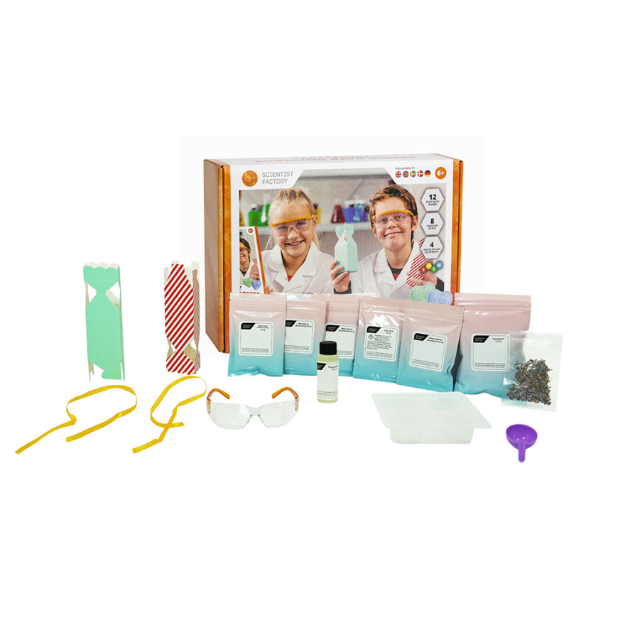 Med «Brusende badebomber» kan du bli en ekte badebombeforsker! Settet lar deg lage fargerike, brusende badebomber i alle regnbuens farger. Utforsk spennende kjøkkenkjemi og oppdag reaksjonene som får det til å boble og bruse i vannet!