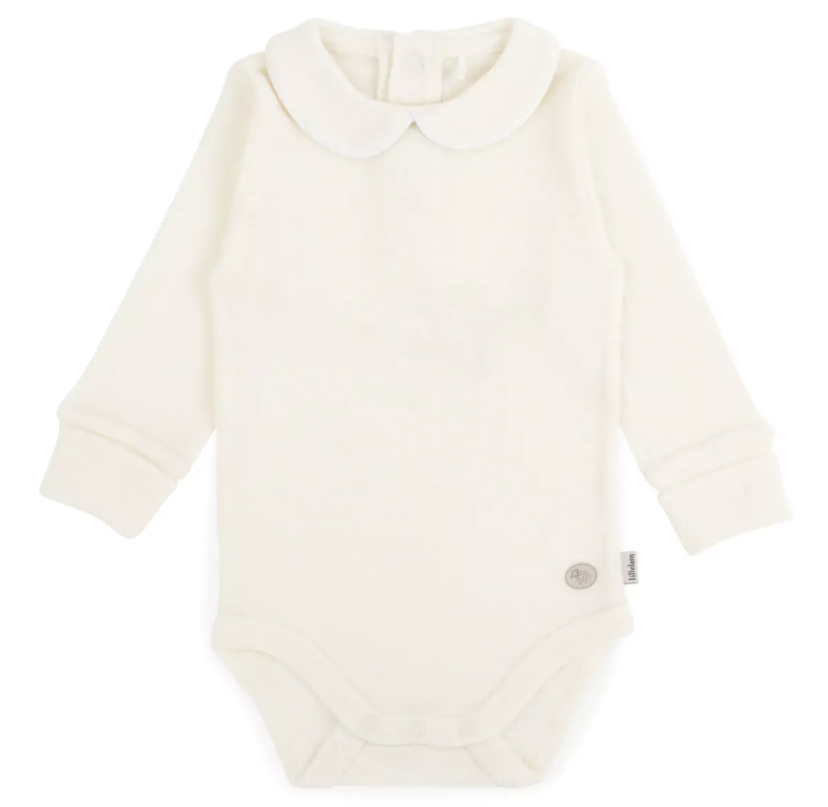 Nyhet! Ullbody med krave i den mykeste merinoull som er kløfri og myk mot huden. Bodyen er kjempesøt under andre plagg, eller kan brukes som en tynn genser. Den har trykknapper bak i nakken og i skrittet.