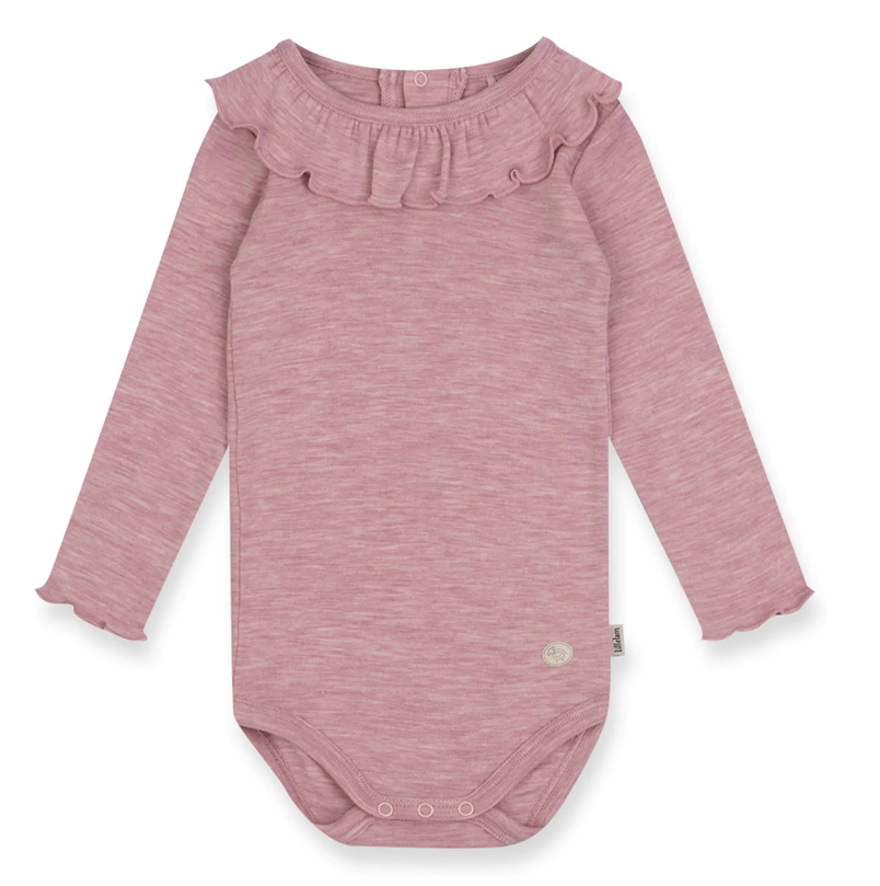Nyhet! Ullbody med krave i den mykeste merinoull som er kløfri og myk mot huden. Bodyen er kjempesøt under andre plagg, og kan brukes til både gutter og jenter. Den har trykknapper bak i nakken og i skrittet.