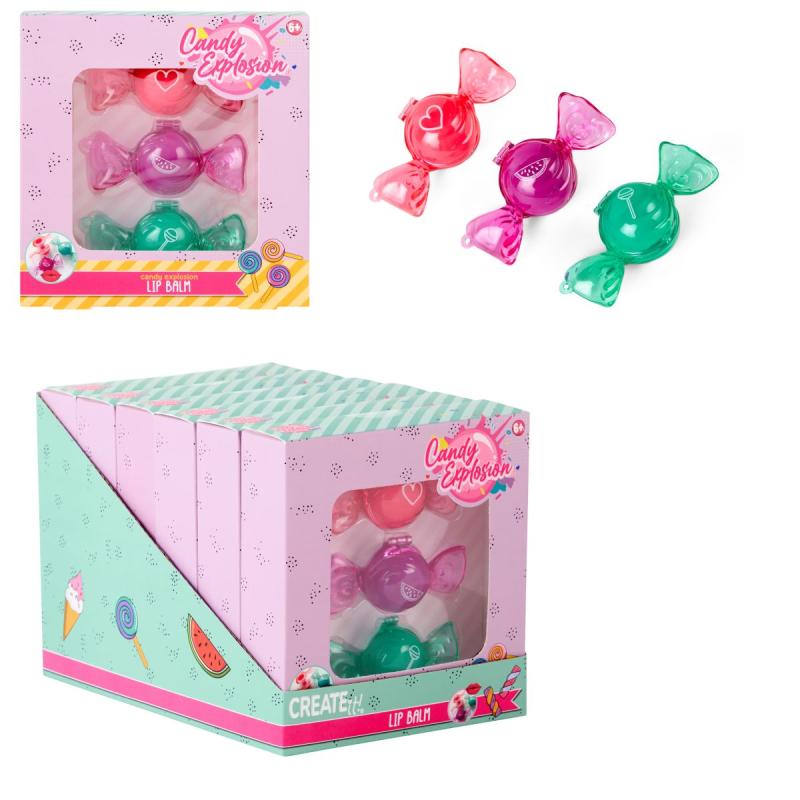 LIPBALM KARAMELLER SETT 3STK CANDY EXPLOSION CREATE IT!