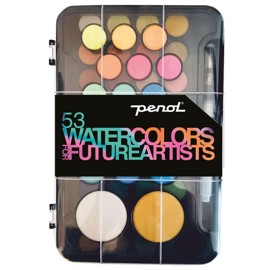 Maleskrin inkl. pensel med delikate farger i ulike størrelser inkl. pensel. Maleskrinet kommer med plastlokk slik at du kan trygt og enkelt kan legge det vekk når du er ferdig. Vannfargene er giftfrie. Fargene kan fjernes med vann og såpe.