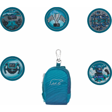 5 buttons med mange spennende motiv. Disse kommer i en egen minisekk som også passer til bamsen, superhelten eller dukken. Merkene festes med borrelås og kan derfor enkelt flyttes rundt.
