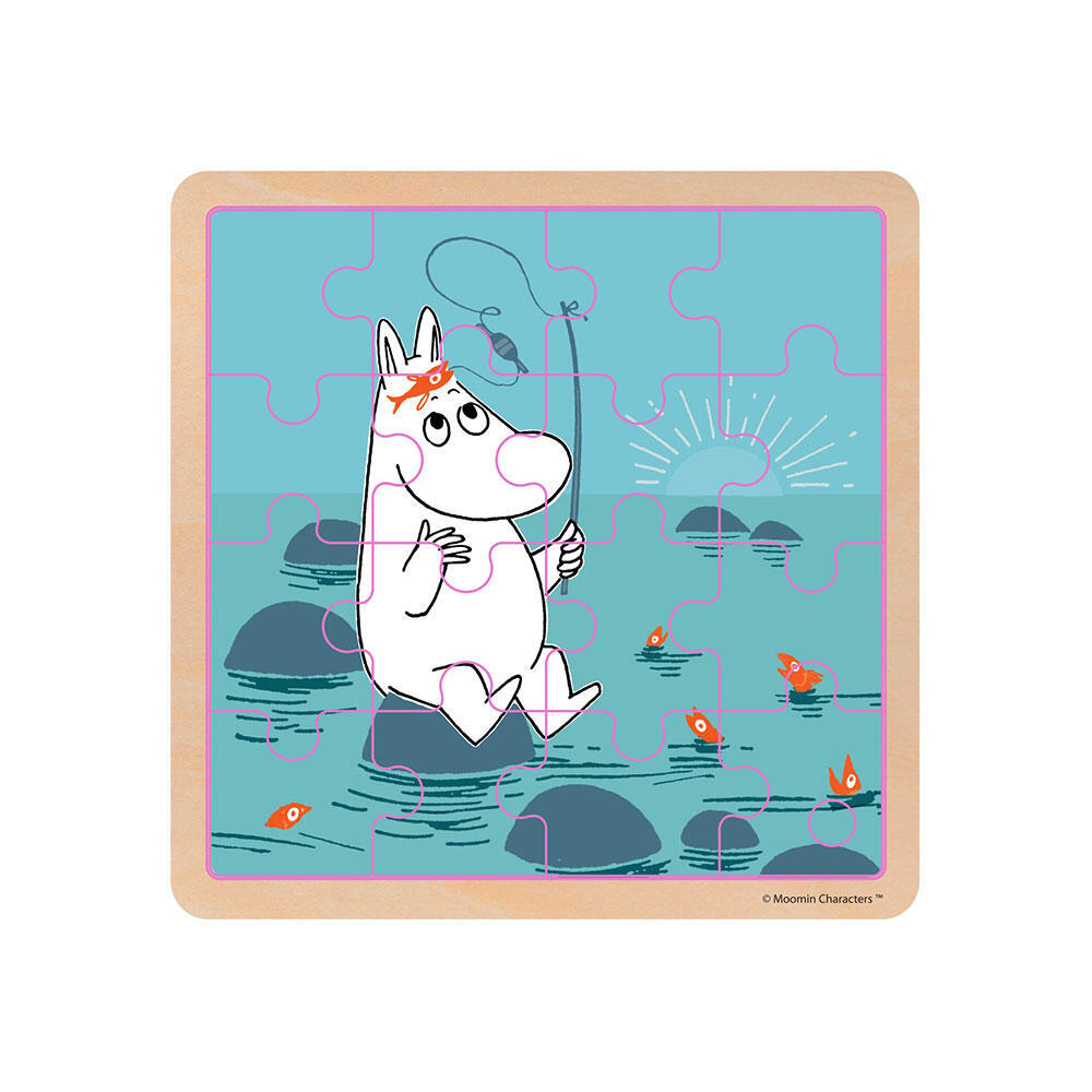 Flott Mummi puslespill i treramme med motiv av Mummitrollet på fisketur!