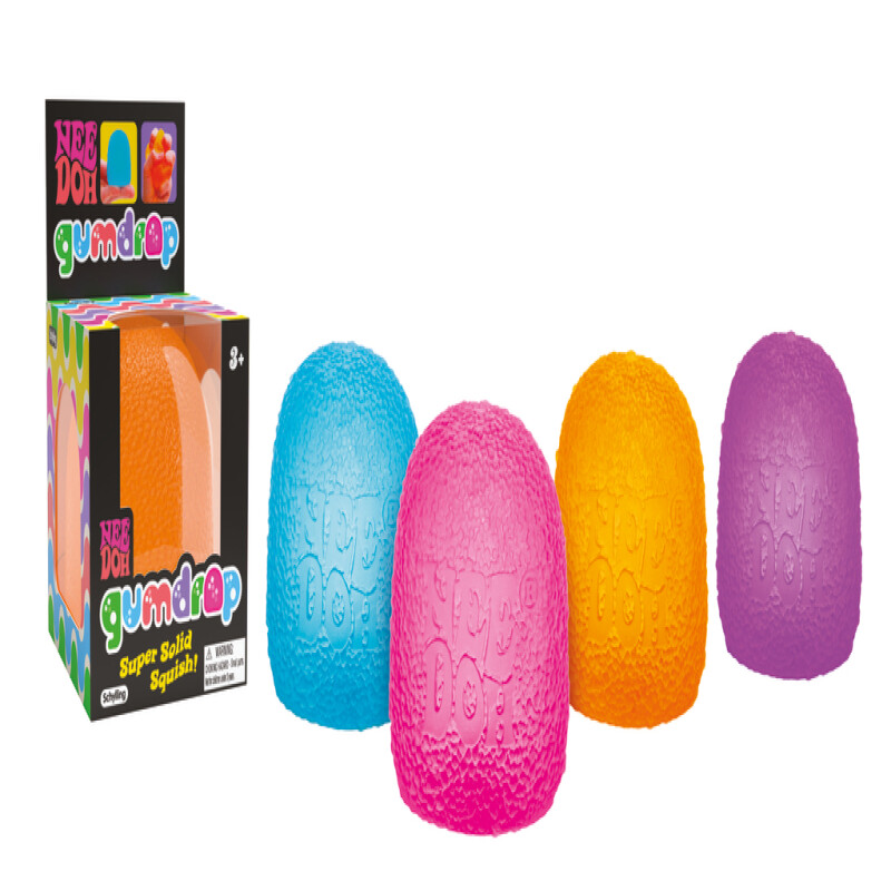 NeeDoh Gumdrop er en doh-lectable, ikke-spiselig, klebrig gumdrop med den superfaste squishen. Gumdrop er som en overdimensjonert fruktkjøtt og gir deg en ny solid sanseopplevelse når du klemmer den. Tilgjengelig i 4 farger.