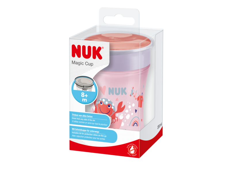 NUk Evolution Trainer Cup er en sølefri tutekopp for barn fra 8 månder og oppover. Koppen på 230ml har en fantastisk 360 konstruksjon som gjør at barnet kan drikke fra alle sider av koppen - akkurat som ett vanlig glass, bare uten søl. Koppen er sølesikker og har et ergonomiske design.