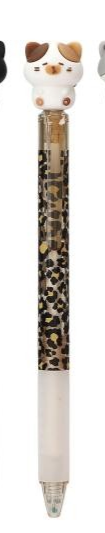 Skriv, slett, overskriv! Ikke noe problem med de slettbare PENfection-gelpennene. Pennene har en supersøt, figurativ kattetopp som fungerer som et viskelær (termofølsomt blått blekk som forsvinner når det varmes opp ved friksjon). Ledningene (blytykkelse 0,7 mm) er ikke utskiftbare. Tre design tilgjengelig: hvit og brun kattetopp og leopardpenn, svart kattetopp med svart gjennomsiktig penn og grå kattetopp med blomsterrosa penn.