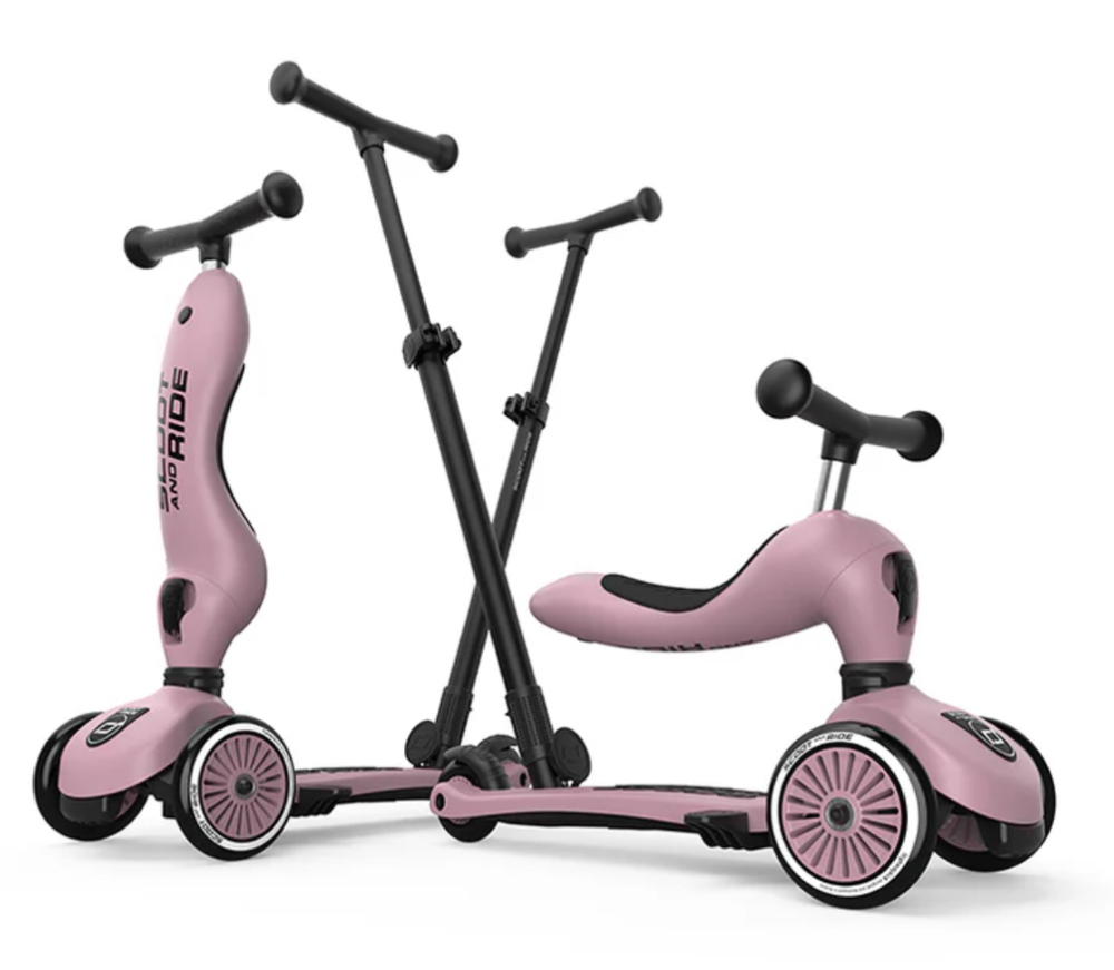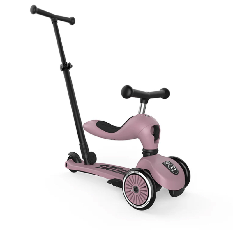 Highwaykick 1 Push and Go kombinerer alle fordelene med Highwaykick 1 med en ny, viktig funksjon: foreldre-skyvestangen. Nå er det mulig å skyve barn mellom ett og tre år komfortabelt, både sittende og stående. Den praktiske skyvestangen kan festes til fotbrettet på sparkesykkelen uten verktøy og kan justeres i tre forskjellige høyder. Fotstøtter kan også festes til fotbrettet slik at barna kan hvile føttene komfortabelt mens de blir skjøvet. Alle de velkjente funksjonene til Highwaykick 1, som 2-i-1-systemet og den høydejusterbare setet, er bevart med Push and Go. Dette betyr at denne modellen også vokser med barnet ditt.