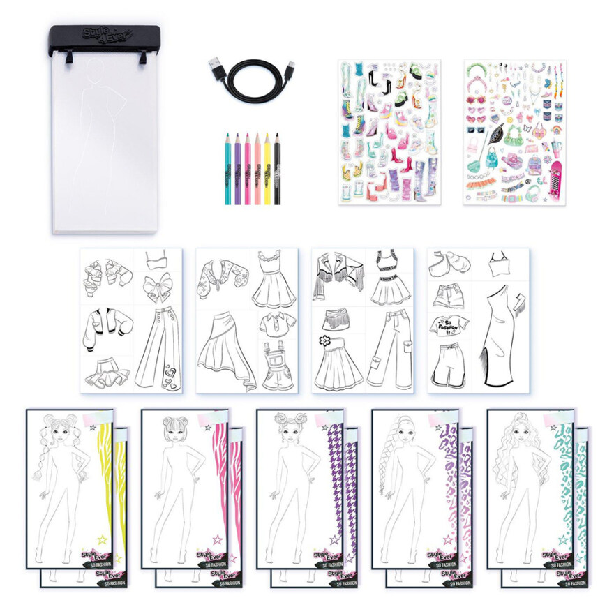 Slipp løs kreativiteten din med Style 4Ever Fashion Designer! Denne fantastiske fashion Light-up Pad lar barn fra 6 år og oppover designe sine egne stilige antrekk. Med det medfølgende tilbehøret har det aldri vært enklere å lage mange forskjellige looks.