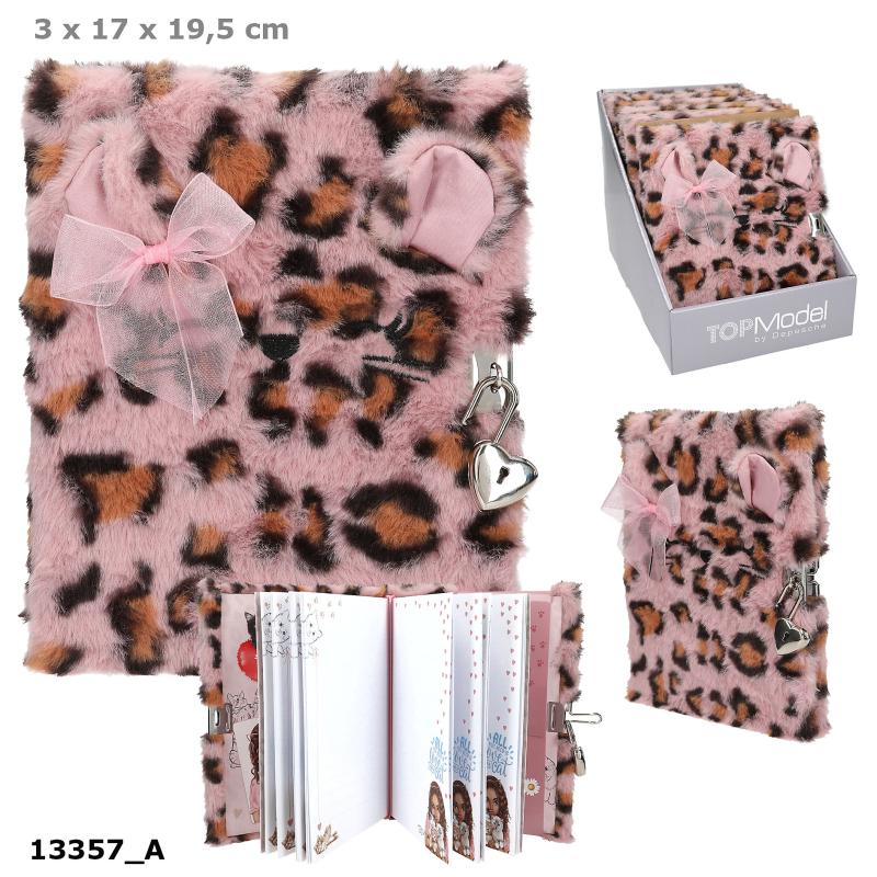 Skriv ned dine innerste tanker, drømmer og opplevelser på sidene i denne herlige dagboken fra TOPModel som inneholder 96 fint dekorerte sider. Dagbokens omslag er laget av myk, imitert pels i rosa og brun med leopardmønster, og boka har et brodert katteansikt og søte, påsatte ører. I tillegg er dagboken forsynet med en søt hjerteformet lås og nøkler slik at du kan beskytte dine personlige minner mot nysgjerrigperer.