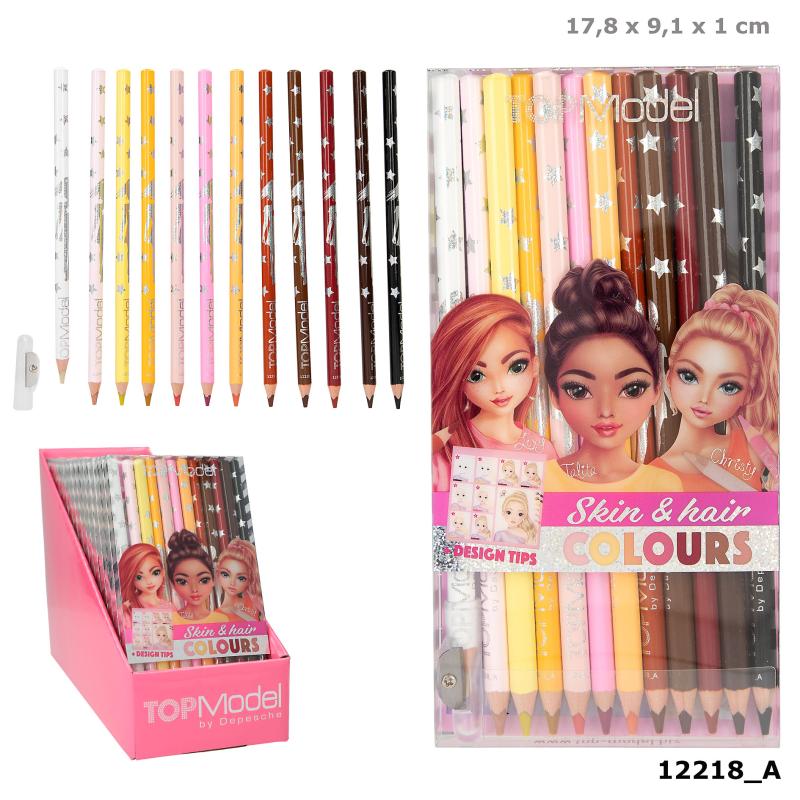 Alle dine TOPModel-kreasjoner kan se virkelig naturlige ut med dette settet bestående av 12 fargeblyanter i forskjellige hud- og hårfarger.
