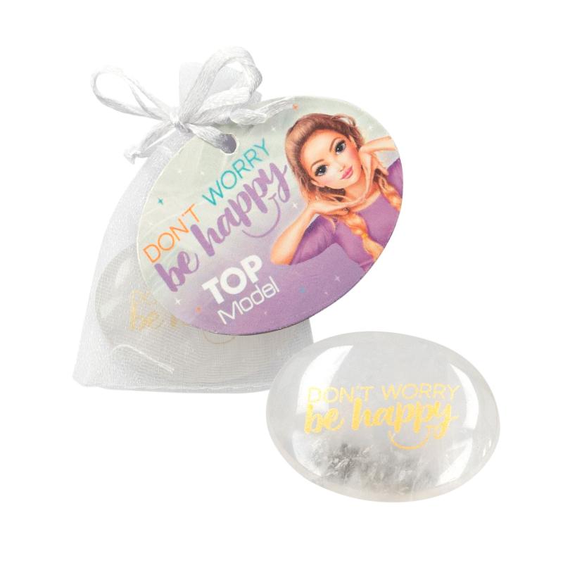 Disse Happy Moods-energisteinene fra TOPModel er ikke bare vakre å se på - hver av dem har sin spesielle magiske og kraftfulle betydning. Den hjerteformede, lys rosa rosenkvarts-steinen (med teksten "I love you") står for kjærlighet, positiv energi og harmoni. Den stjerneformede, grønne amazonitt-steinen (med teksten "You're a star") symboliserer styrke, mot og lykke. Den ovale, hvite bergkrystall-steinen (med teksten "Don't worry, be happy" symboliserer balanse, åpenhet og energi. Hver stein leveres i en liten gjennomsiktig gavepose med en etikett som beskriver steinen og dens krefter.