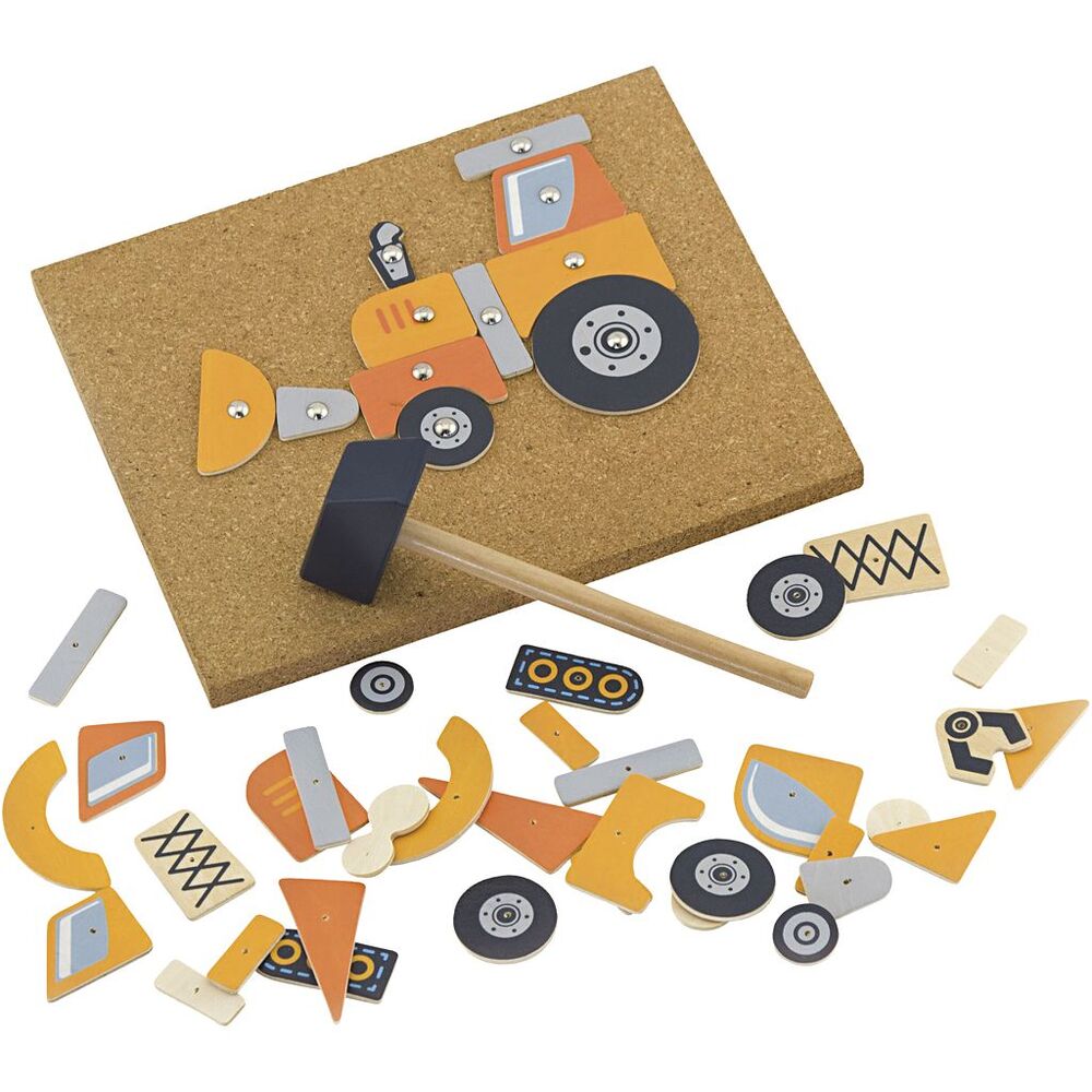 Hammermosaikksett med malte tredeler som kan settes sammen etter oppgavekortene eller lages til ting etter fri fantasi. Utfordrer barnas iakttakelsesevne, fantasi, kreativitet og hånd-øye-koordinasjon