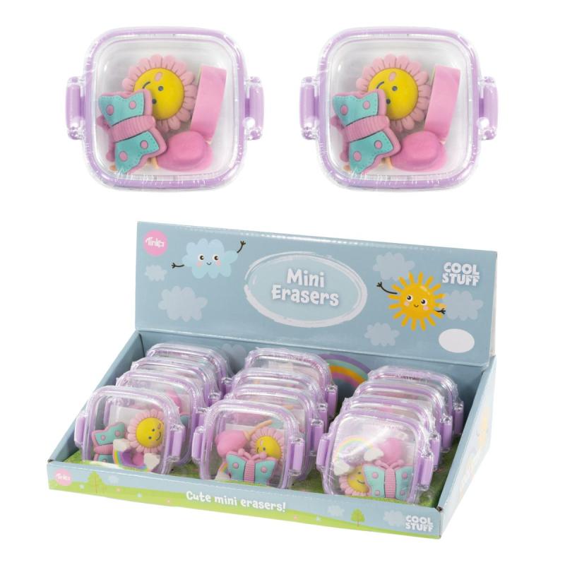 Søte og morsomme viskelær med sommerlige motiver som sol og sommerfugl! Perfekt for skole, tegning og lek. Settet inneholder 4 fargerike viskelær, pakket i en praktisk liten boks. En fin gave til alle som elsker kreative skrivesaker!