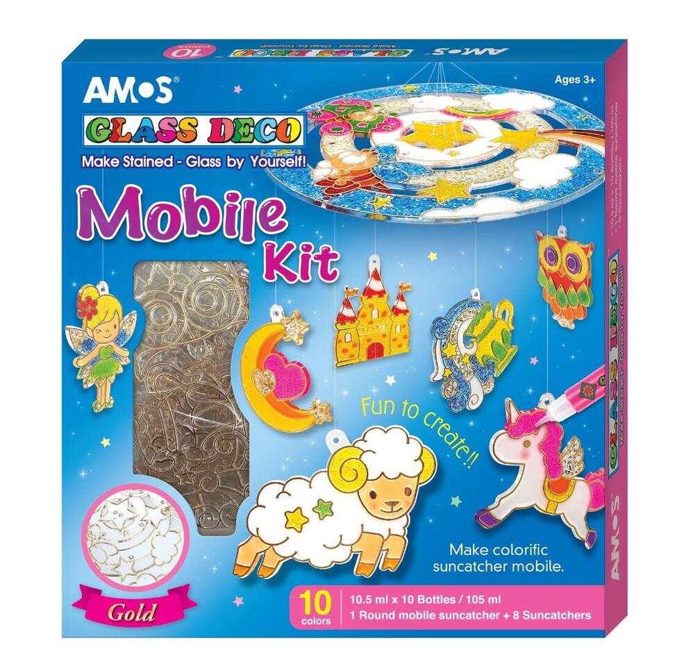Lag en fantastisk fargerik vindusuro som fanger sollyset og sprer magiske farger i rommet! Med dette kreative Glass Deco Mobile-settet fra AMOS kan barna lage sine egne glitrende suncatchers – helt uten mønster. Bare mal, la det tørke, og heng det opp i vinduet!
