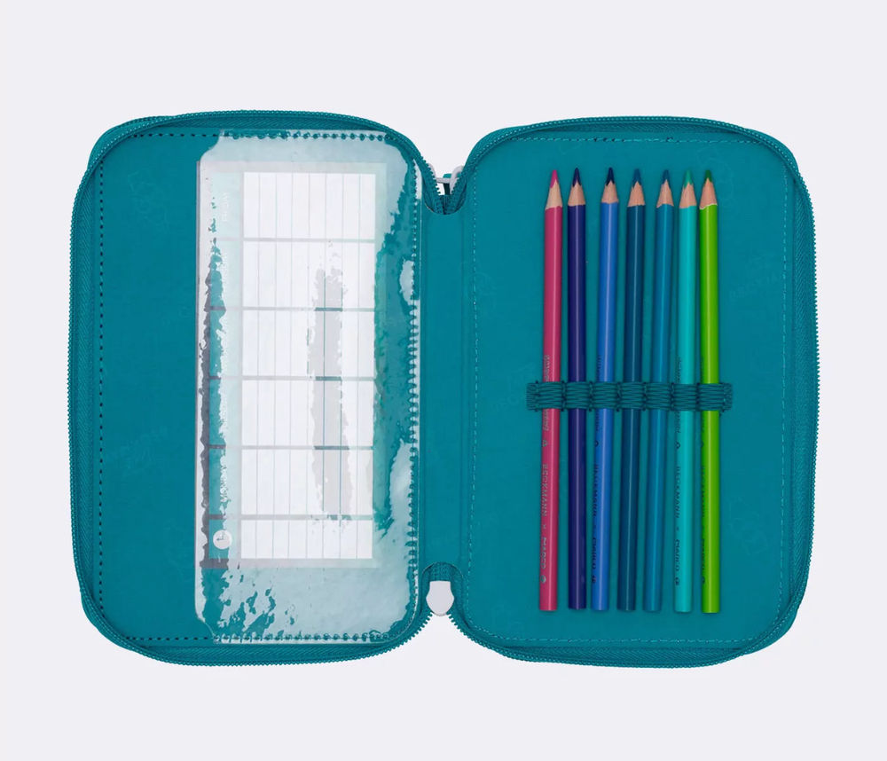 Pennalet er fullt av overraskelser, og inneholder selvfølgelig alt du trenger til skolen og leksene. Blyanter og fargestifter laget av FSC-sertifisert tre.