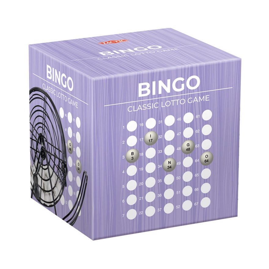 Klassisk Bingo spill med høykvalitets spilldeler og stort bingo-bur i metall.