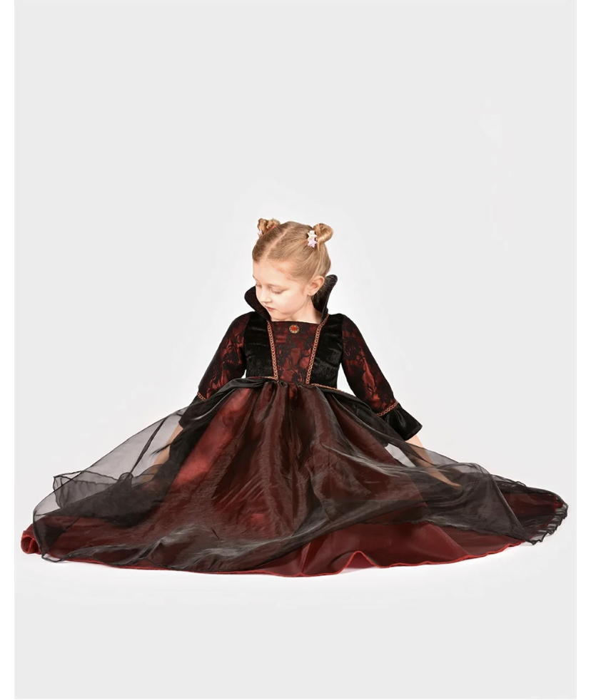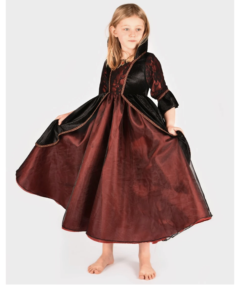 Den gode feen Vampyrkjole sort/rød 10-12 år