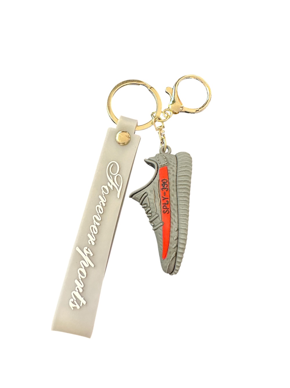 Nøkkelring med forskjellige farger joggesko figurer og "forever sports" charmen