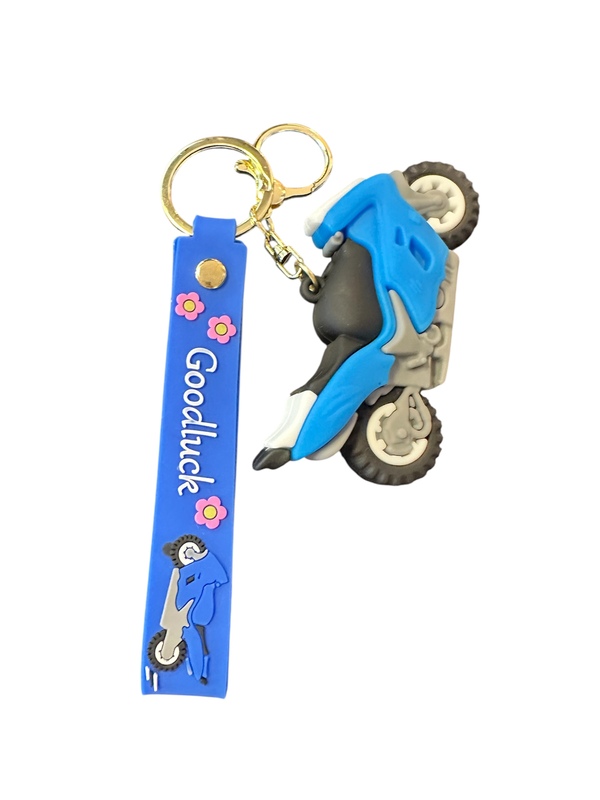 Nøkkelring med forskjellige farger på motorsykkel og "goodluck" charmen