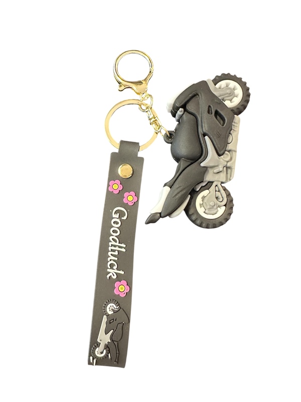 Nøkkelring med forskjellige farger på motorsykkel og "goodluck" charmen