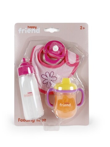 Spisetid! Dukken din vil alltid være glad med dette flotte måltidssettet! Tåteflaske, juicekopp, smekke og smokk sørger for at dukken har alt som skal til for å bli mett og fornøyd. Inneholder 4 deler: melketåteflaske, juicekopp, smekke og smokk. Fra 2 år.