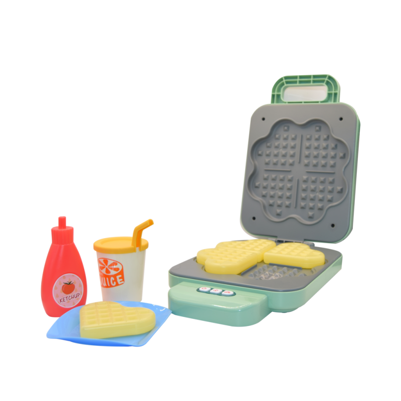 Barn lærer av å se på andre og leke. La dem late som om de lager vafler og serverer dem til venner og familie. De kan til og med oppleve en fargeendring på vaflene etter steking. Vaffelkokersettet består av en vaffelkoker med lys og lyder for realistisk lek, 4 vaffelbiter, tallerken, saftbeger og syltetøyflaske. Krever 3 x AA-batterier (ikke inkludert). Fra 3 år.