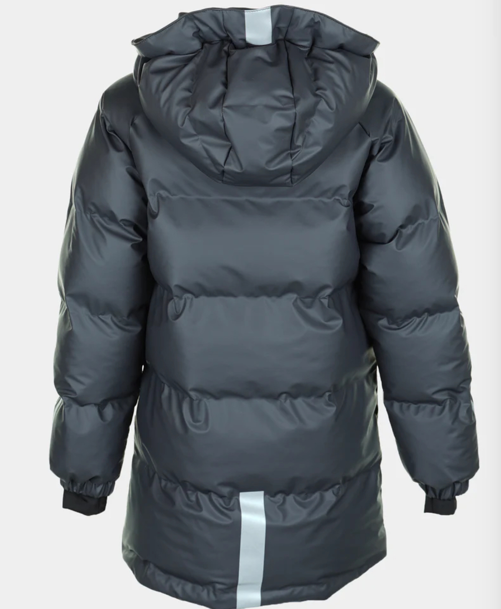 Bobleregnkåper i PU materiale og ei vannsøyle på 10 000 mm. Desse er heilt vanntette der regnet prellar av stoffet. Kåpene har vattering i form av kunstfiber så her kan junior halde seg varm og heilt tørr når hausten sett inn for fullt. Det syntetiske foret held på varmeevna når det blir vått, i motsetning til dun, og sidan dette er ei regnjakke har me valt bort dunet. Kåpa er slitesterk og kan vaskast som vanleg PU-regntøy utan å miste form og funksjon. I tillegg tørkar syntetiske materialar raskare enn naturleg dun, noko som er ideelt når PU-stoffet ikkje skal i tørketrommelen. I tillegg har kåpa sjølvsagt teipa og sveisa saumar