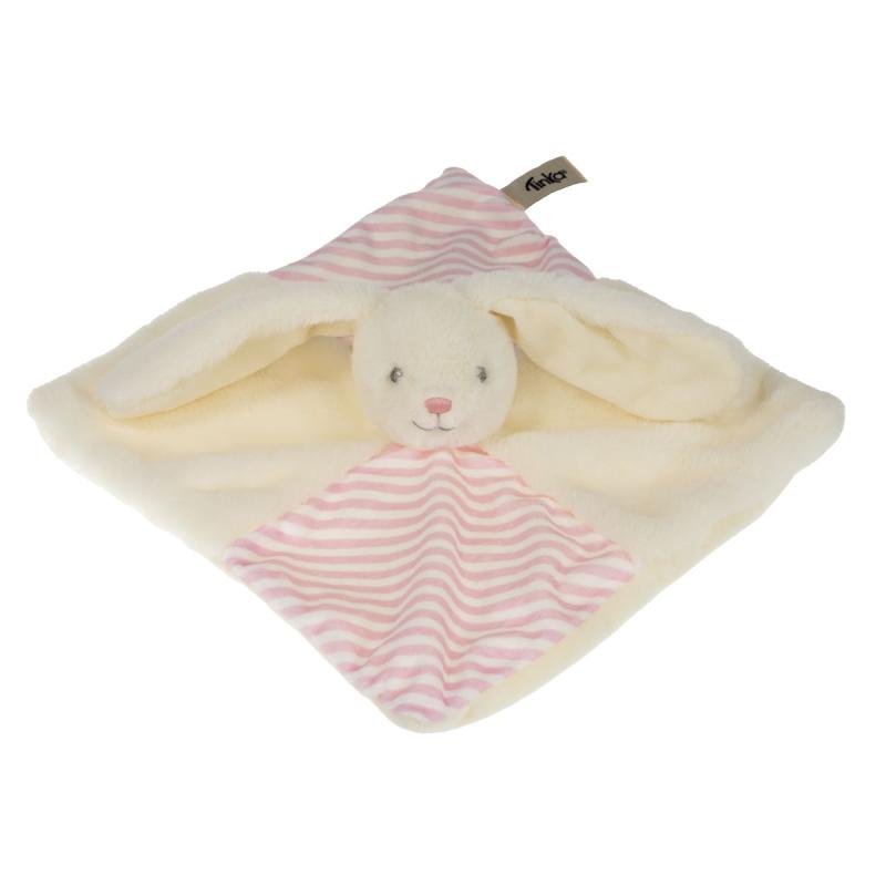 Myk koseklut fra Tinka i hvit og rosa, formet som kanin. Gir trygghet og komfort til baby. Størrelse 29 cm. Type: Koseklut.