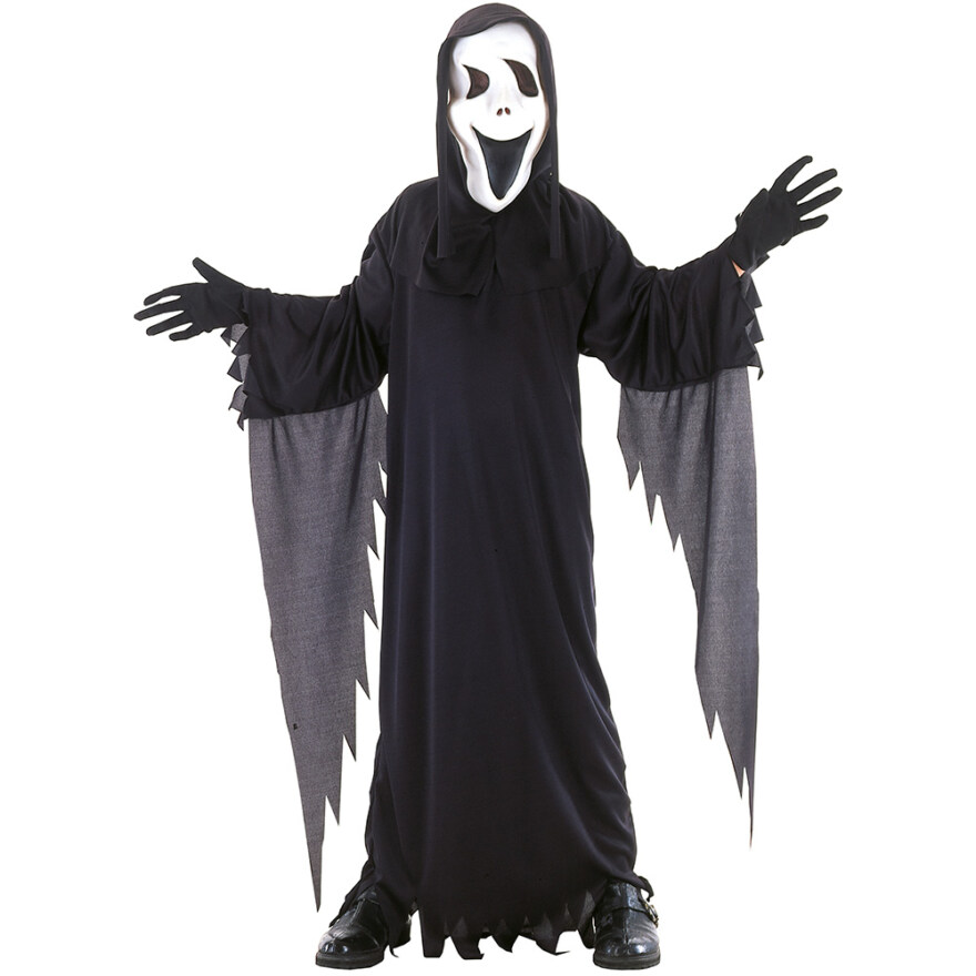Forvandle deg til en demon! Dette settet inkluderer en lang, svart kåpe og en skremmende maske som kan minne om den ikoniske Scream-masken. Perfekt for Halloween, kostymefester, eller temafester, gir dette kostymet deg en autentisk og skremmende look. Gjør deg klar til å dominere natten med dette skremmende kostymet!