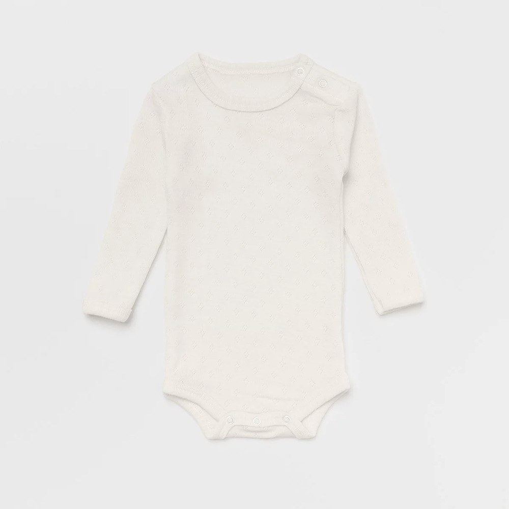 Tynn og myk body til baby og småbarn, laget i den mykeste merinoullen. Trykknapper på venstre skulder gjør den enkel å ta av og på. Strukturen gjør bodyen spesielt godt egnet for babyer, siden den er luftig og aldri blir for varm takket være ullfibrenes naturlige temperaturregulerende egenskaper.