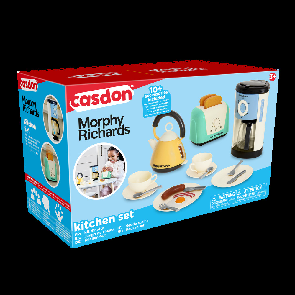 Dette kjøkkensettet er designet for å se akkurat ut som de ekte Morphy Richard-kjøkkenapparatene, og inkluderer en fyllbar kaffetrakter som heller vann direkte i kaffekannen, en vannkoker (med vannnivå for å oppmuntre hånd-til-øye-koordinasjon) og en brødrister komplett med «pop-up»-toast for et ekstra element av forventning!