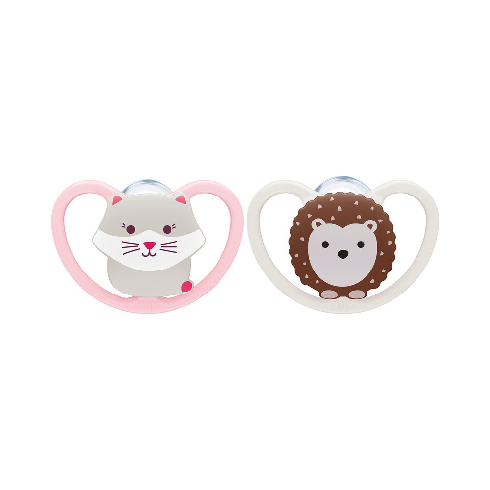 NUK Space 0-6 Måneder Smokk 2-pack - Katt/pinnsvin
