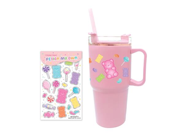 Gjør deg klar for en kul og tilpassbar drikkeopplevelse med vår On-the-Go-krus, komplett med et pop-up-sugerør og et sett med klistremerker for å personliggjøre koppen din.