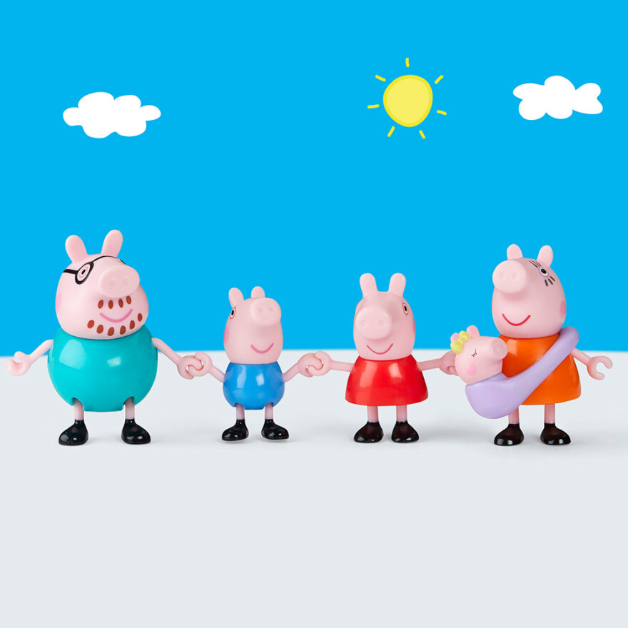 Inkluderer Peppa, Mamma Gris, Pappa Gris, George og Baby Evie