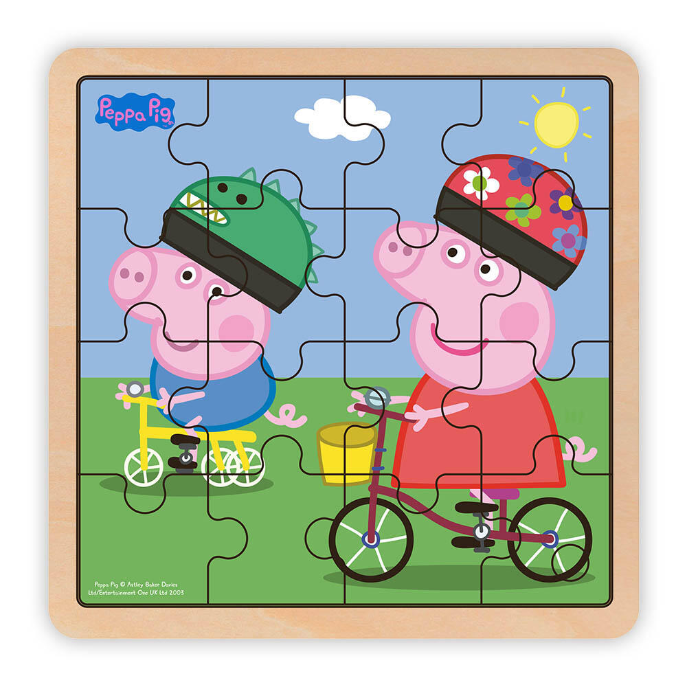 Flott Peppa Gris puslespill i treramme med motiv “på sykkeltur”!