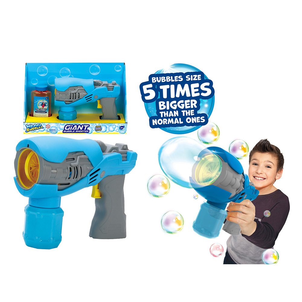 Denne såpeboblepistolen lager ekstra store bobler som svever imponerende langt og gjør utendørslek enda morsommere. Den er enkel å bruke – fyll på boblevæske, trykk på avtrekkeren og se de store boblene fly avgårde. Perfekt for sommermoro, hagelek og festlige anledninger.